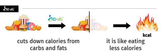 • ID-alG ™ blocca fino al 77% dei carboidrati e il 63% dei grassi enzimi digestivi ³