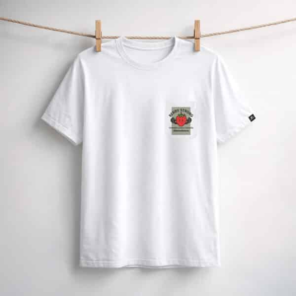 Una T-shirt bianca con una grintosa illustrazione di una fragola che solleva pesi e la scritta in evidenza “BERRY STRONG”. Con il tagline “La forza viene naturale”, questa maglietta è un modo divertente e motivante per mostrare la tua forza naturale.
