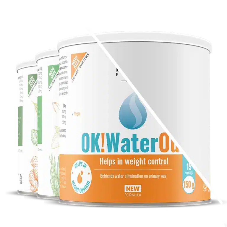Nei successivi 15 giorni aggiungete 2 misurini (10 g) di OK!WaterOut in un bicchiere d’acqua dopo colazione, mescolate e bevete.