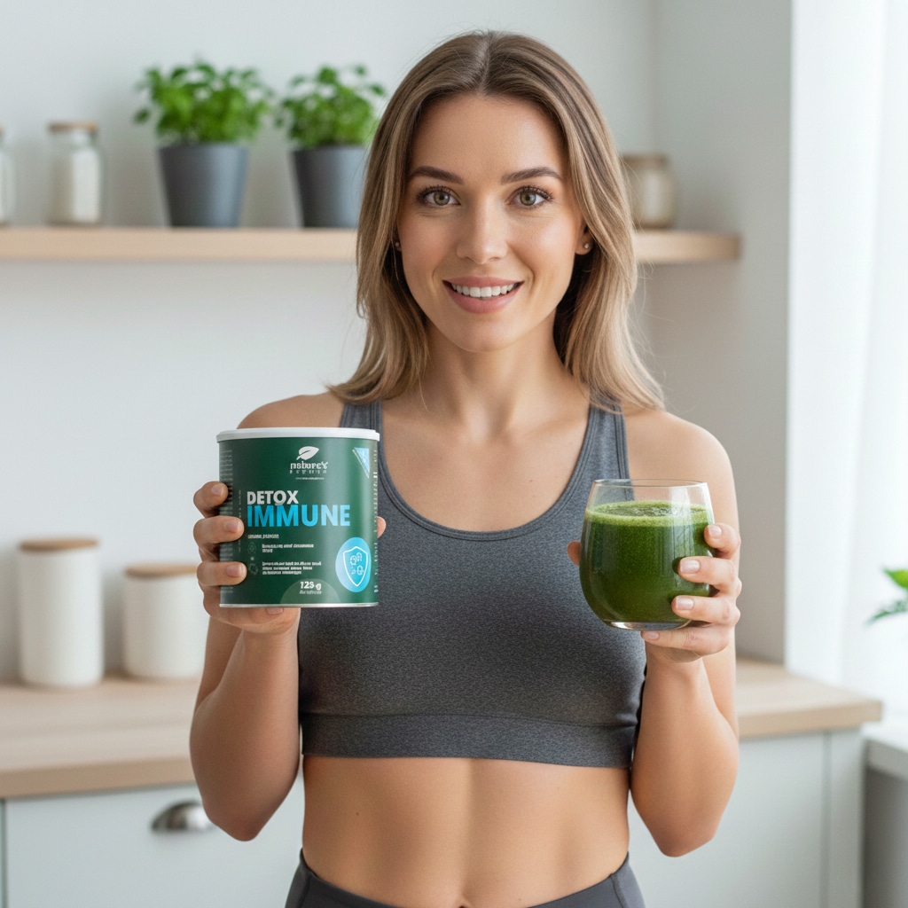 Mescola 1 misurino (5 g) del prodotto Detox Immune in un bicchiere d’acqua (200 mL) e bevi.