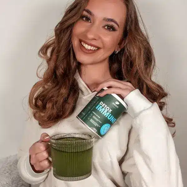 Mescola 1 misurino (5 g) del prodotto Detox Immune in un bicchiere d’acqua (200 mL) e bevi.