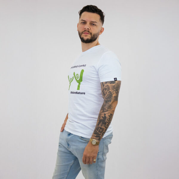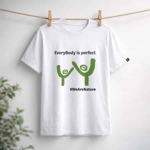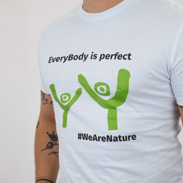 Una T-shirt bianca con una grafica audace e minimalista di due figure verdi e il messaggio “EveryBody is perfect.” Pensata per uomini che apprezzano sicurezza e autenticità, questa maglietta unisce lo stile a un sottile messaggio di autoaccettazione.