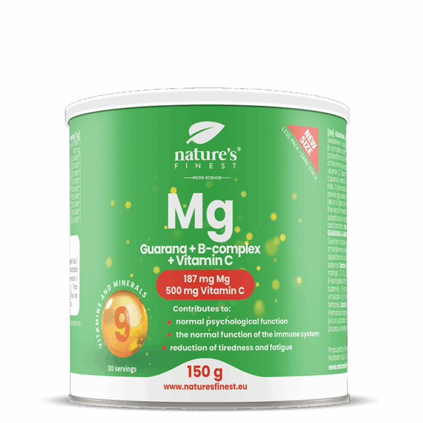 Magnesio + Guaranà + Complesso B + Vitamina C è destinato a tutti coloro che desiderano fornire più energia, normale funzione muscolare, sistema nervoso e un forte sistema immunitario.