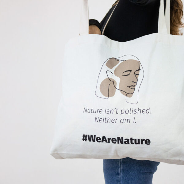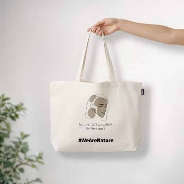 Una tote bag intramontabile progettata per uno stile senza sforzo e un uso quotidiano. Stampata con il messaggio ricco di significato “La natura non è perfetta. Nemmeno io.” accanto a un disegno lineare minimalista di un volto sereno, celebra l’autenticità e l’accettazione della bellezza naturale.