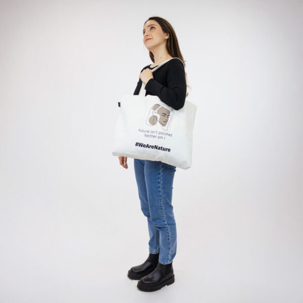 Capiente, versatile e resistente, questa borsa è ideale per portare con te l’essenziale, riflettendo al tempo stesso i tuoi valori e il tuo amore per il mondo naturale.