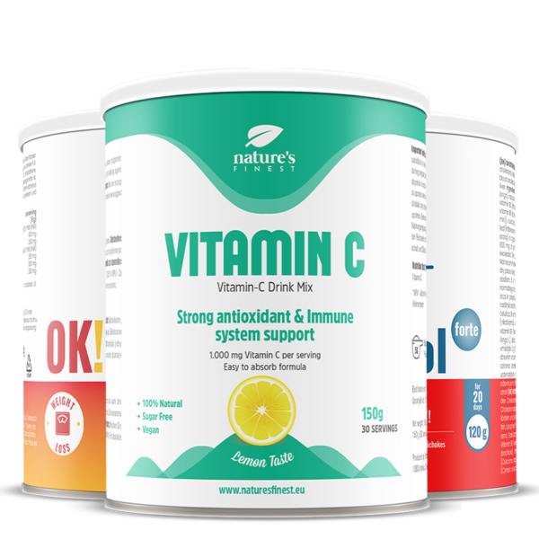 Vitamin C: La quantità giornaliera raccomandata è di 5 g (1 misurino). Mescolare in un bicchiere d’acqua e ingerire non appena la polvere si dissolve. Con 5 g di polvere prendi 1000 mg di vitamina C.