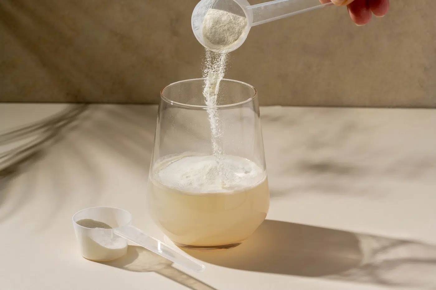 Aggiungi 5 g di ciascun prodotto (Vitamina C, Magnesio, Calcio, Complesso B e Vitamina D3) in un bicchiere d’acqua, mescola bene e bevi.