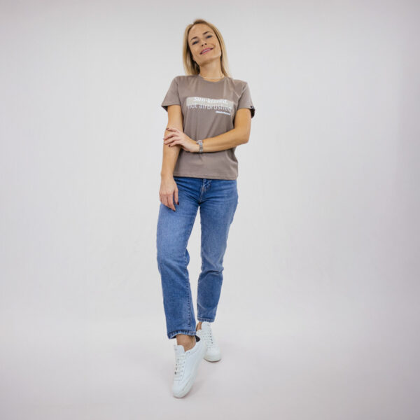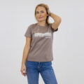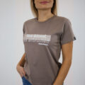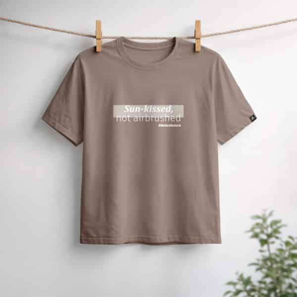 Una T-shirt minimalista color tortora creata per un look quotidiano naturalmente sicuro di sé. Con la delicata scritta “Sun-kissed, not airbrushed” stampata in un morbido bianco, celebra l’autenticità e la bellezza senza sforzo.